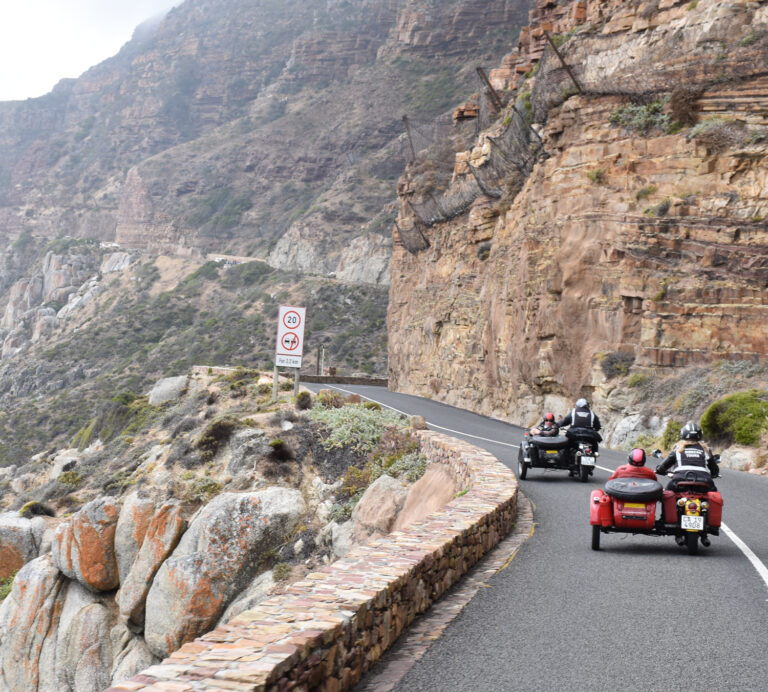 A spectacular route, allows riders to enjoy sightings of numerous aquatic and marine bird species including pelicans, flamingos, terns and gulls. The route then onto Bloubergstrand beach. We stop here for a quick break and opportunity to take a selfie with the iconic Table Mountain as a backdrop. Then, its time to re-board your sidecar & continue northwards along the coast enjoying the beachfront activity & scenery with the famous Robben Island in the background.